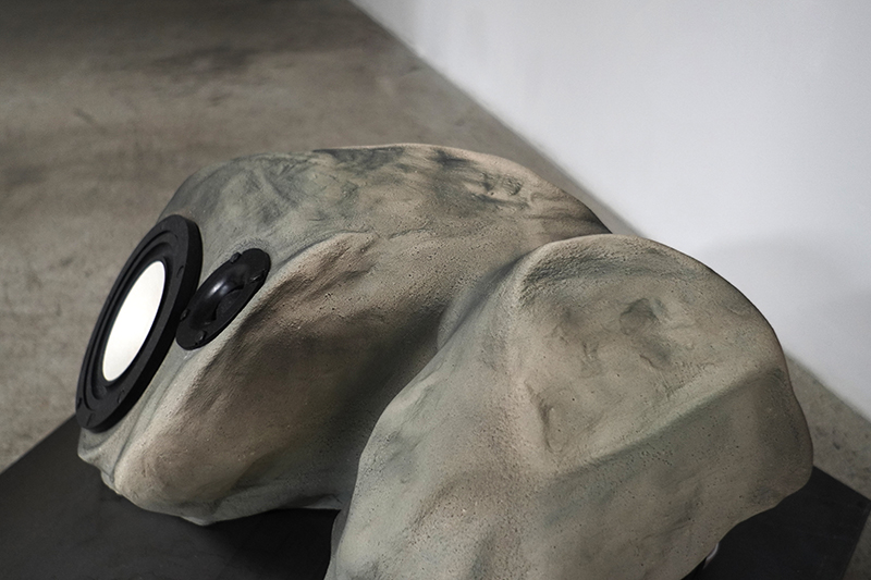 Les Écueils, ces roches qui dépassent dangereusement de la mer, sont matérialisés par un ensemble de parpaing sur lesquels repose deux fragiles circuits façonnés en laiton dont le souffle des composants produit un son proche du bruit blanc. Dans les parpaings, sont incrustés deux variateurs. Ils permettent de moduler le volume du circuit dans chacune des oreilles du casque radio militaire. Ici, il est question de proposer aux visiteur.ice.s une expérience d’écoute des potentielles propriétés psychoacoustiques ces bruits presque blanc. S’ils peuvent clairement évoquer le son d’une fontaine, de la pluie ou de la mer, ils peuvent aussi générer d’autres apparitions plus subjectives telles que des voix ou des mélodies. Et c’est probablement parce qu’ils sont composés de toutes les fréquences audibles que nos mécanismes cognitifs vont être plus facilement sujets à ces illusions sonores appelées paréidolies. Notre cerveau va chercher à reconnaître dans les sons abstraits des formes identifiables, construites par rapport à nos imaginaires, référentiels personnels et constructions culturelles.